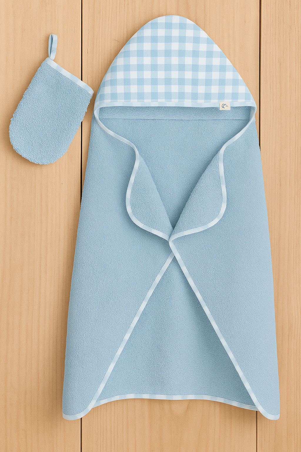 CAPA DE BAÑO + MANOPLA VICHY CELESTE