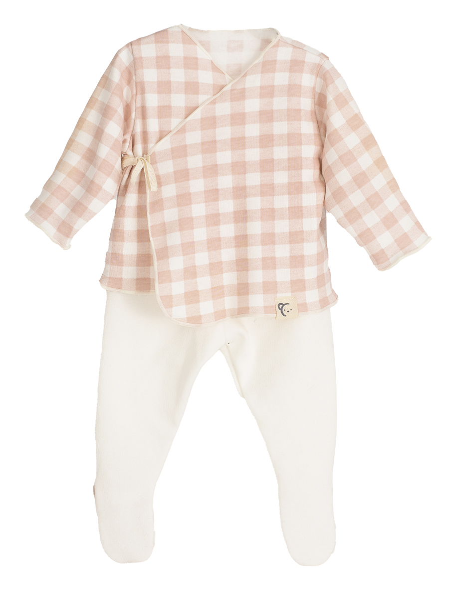 El pack de regalo de nacimiento incluye: Pijama dos piezas primera puesta, gorro y manoplas.